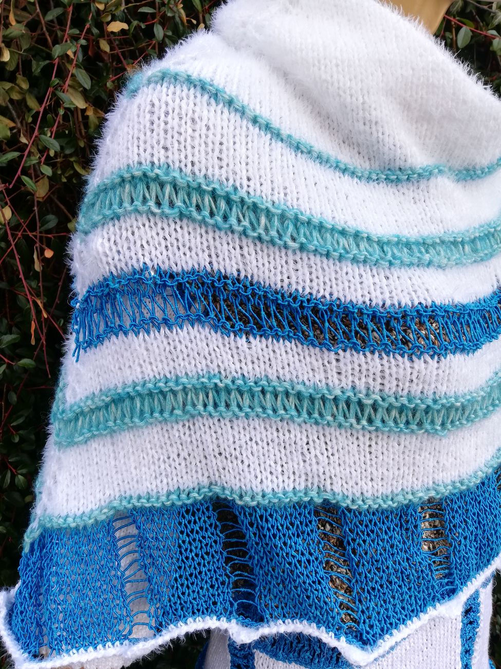 Der Grundschnitt bleibt und Sie entscheiden wie lang, weit, wie tief der Ausschnitt sein soll, ob Jacke oder Pullover, ... welches Garn/Wolle und welches Farbspiel.