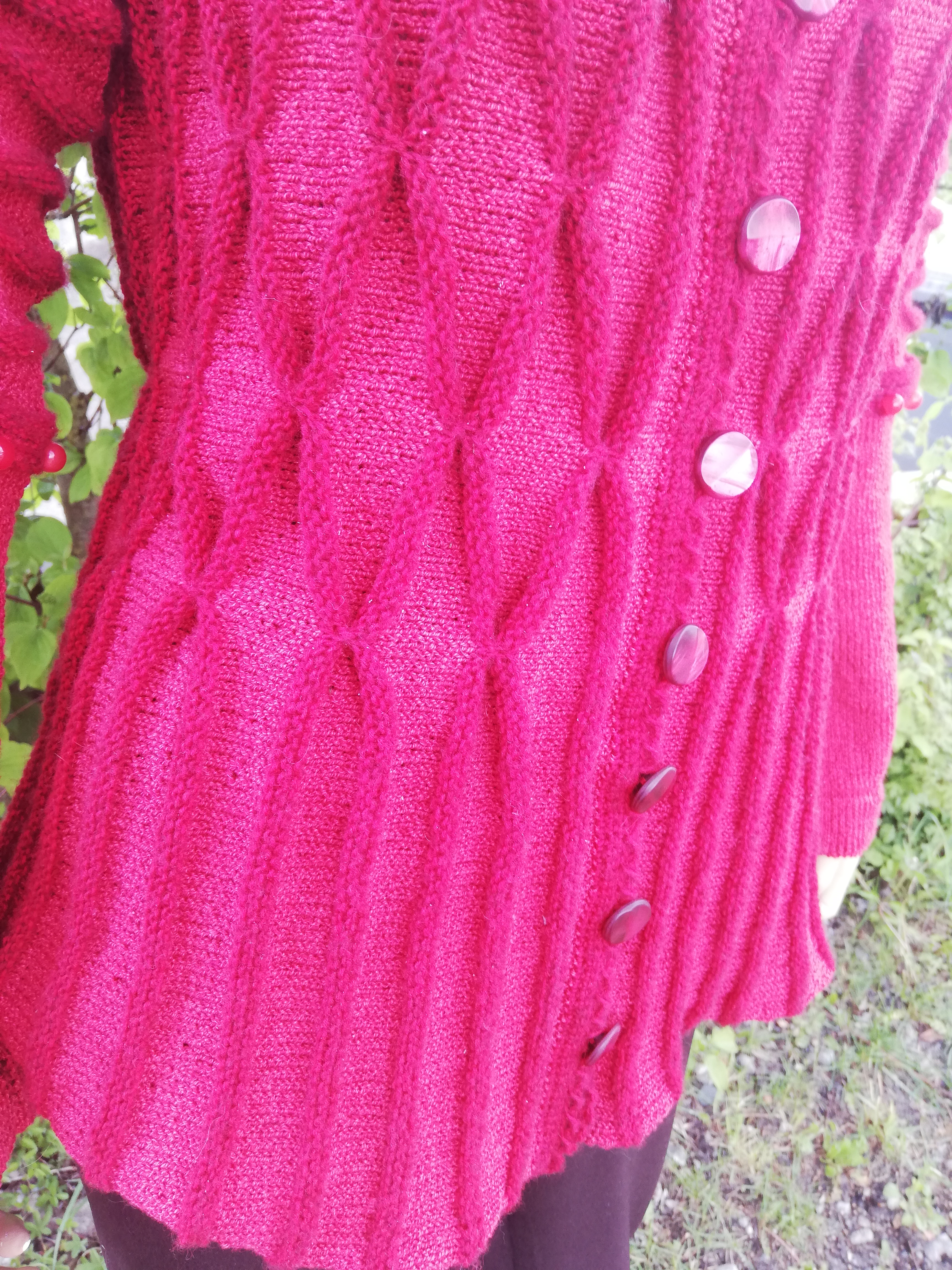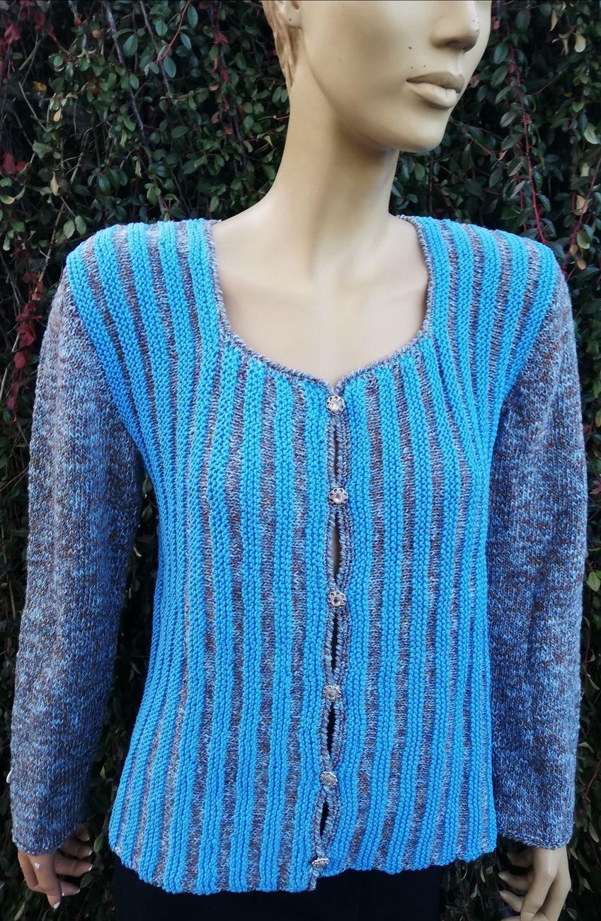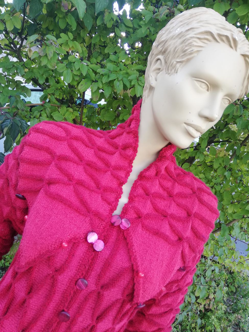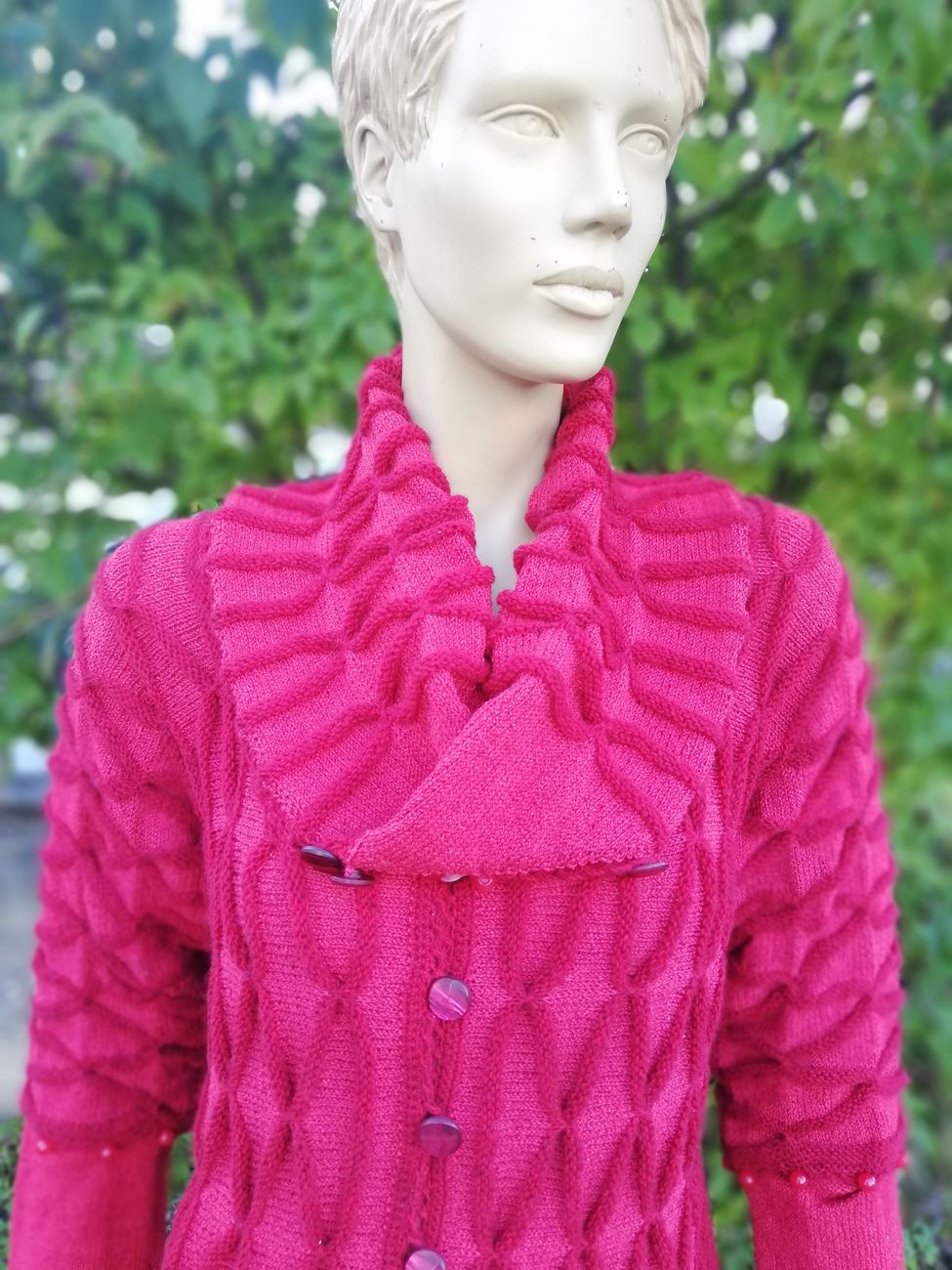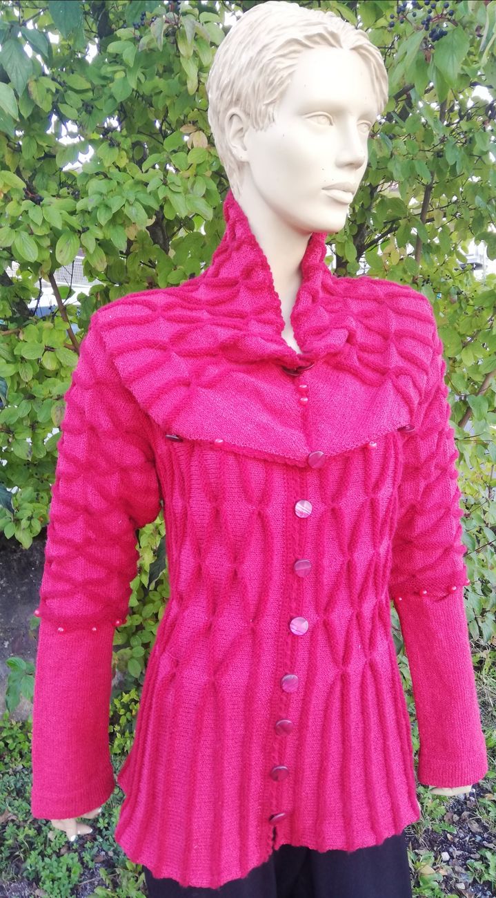 Bei dieser Jacke stand für mich das Spiel der unterschiedlichen Garne und die Optik im Vordergrund, sowie auch die Verwandelbarkeit und Figurfreundlichkeit.
