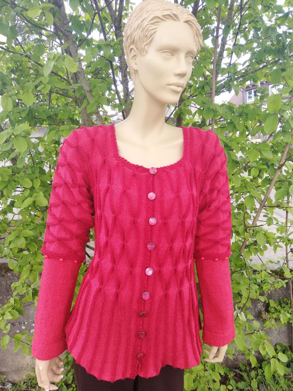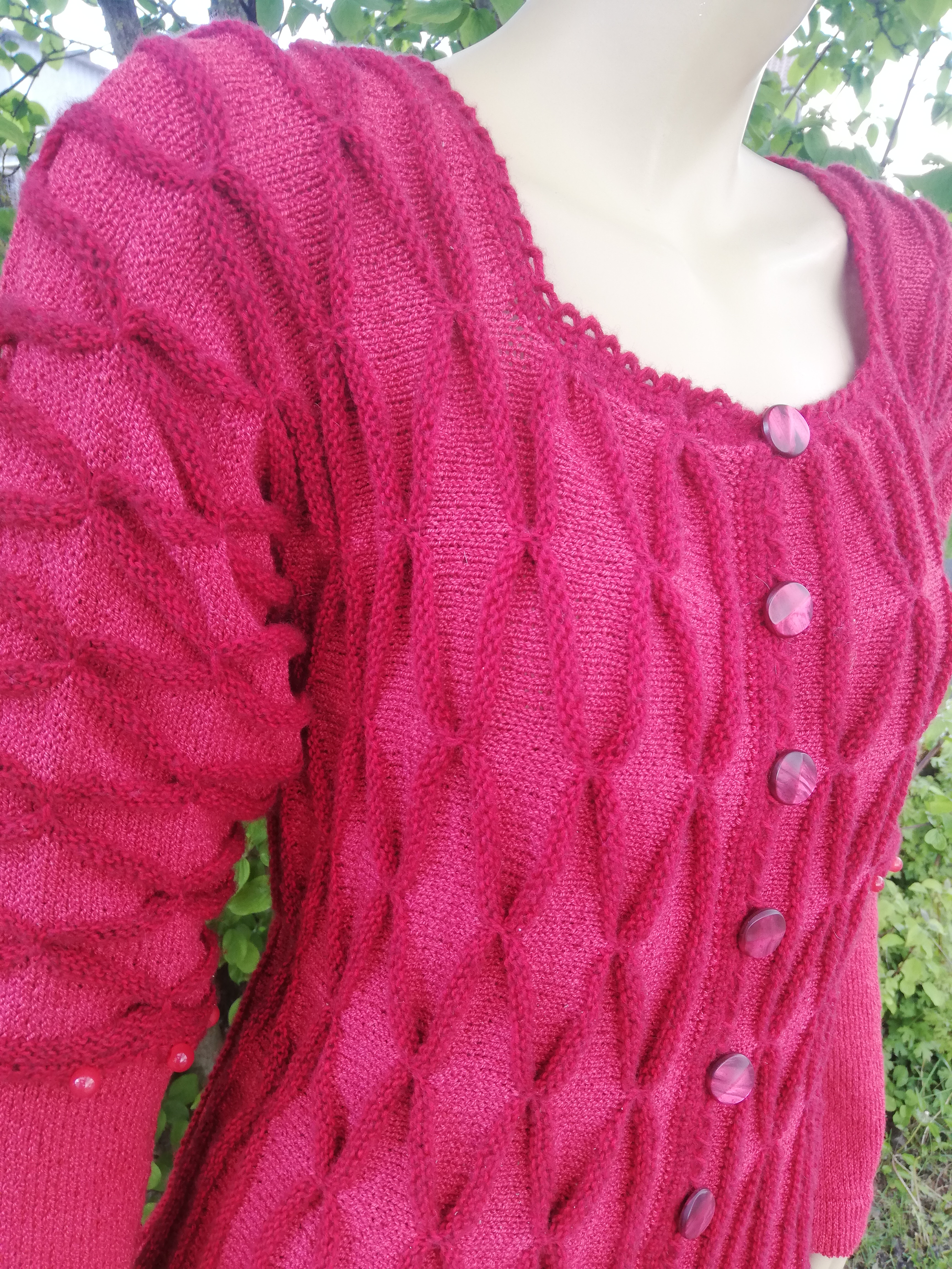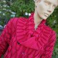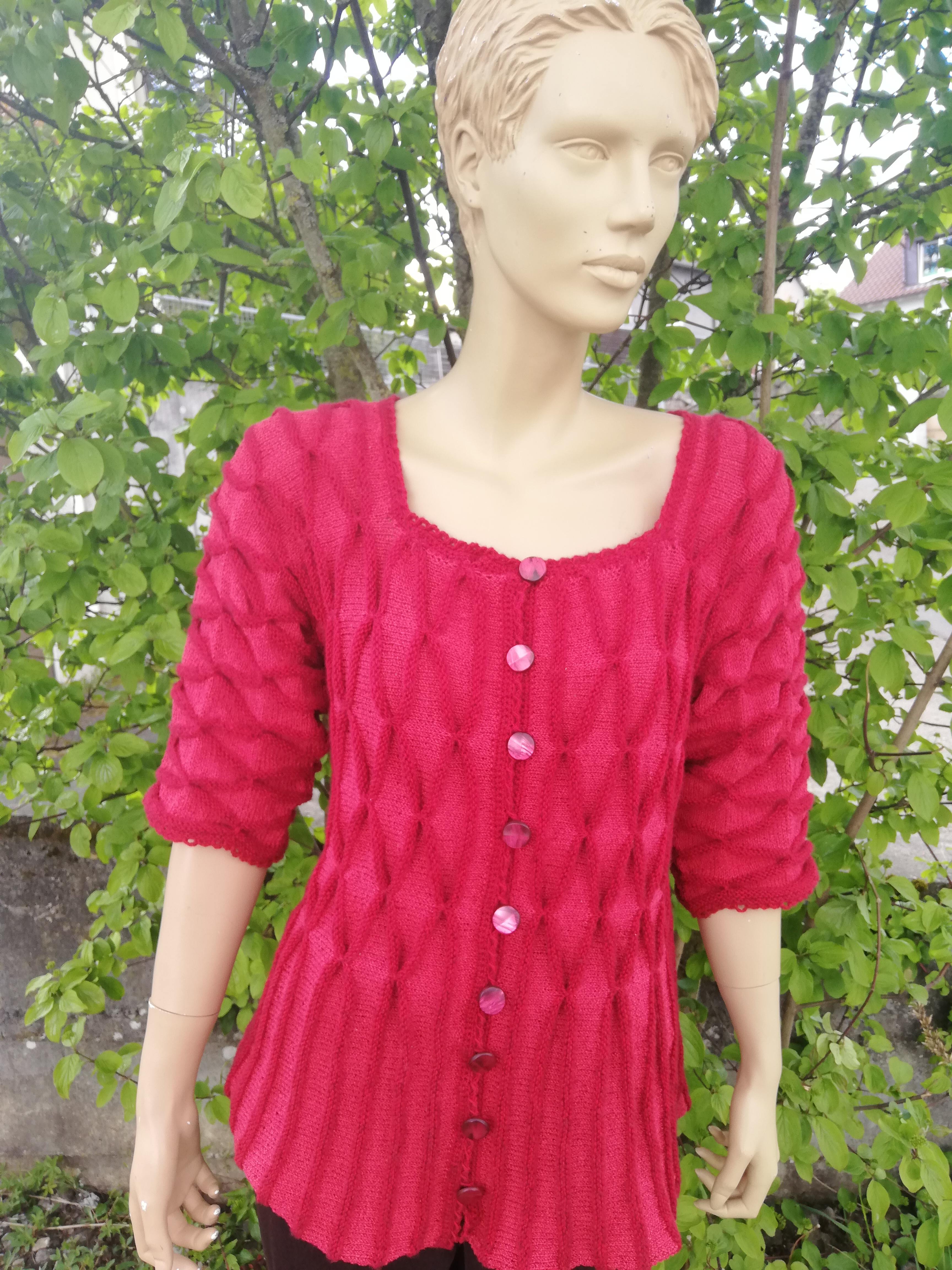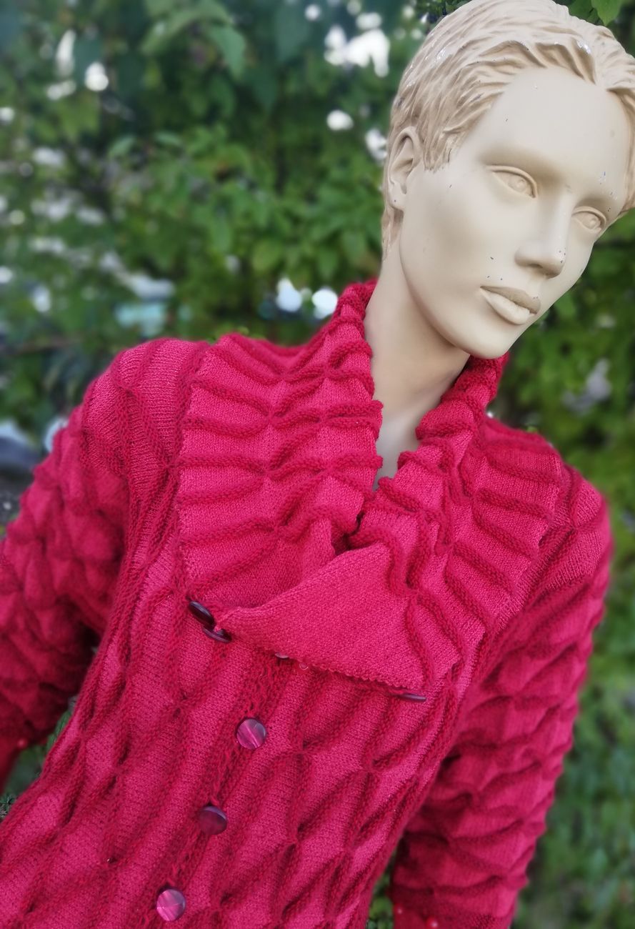 Bei dieser Jacke stand für mich das Spiel der unterschiedlichen Garne und die Optik im Vordergrund, sowie auch die Verwandelbarkeit und Figurfreundlichkeit.