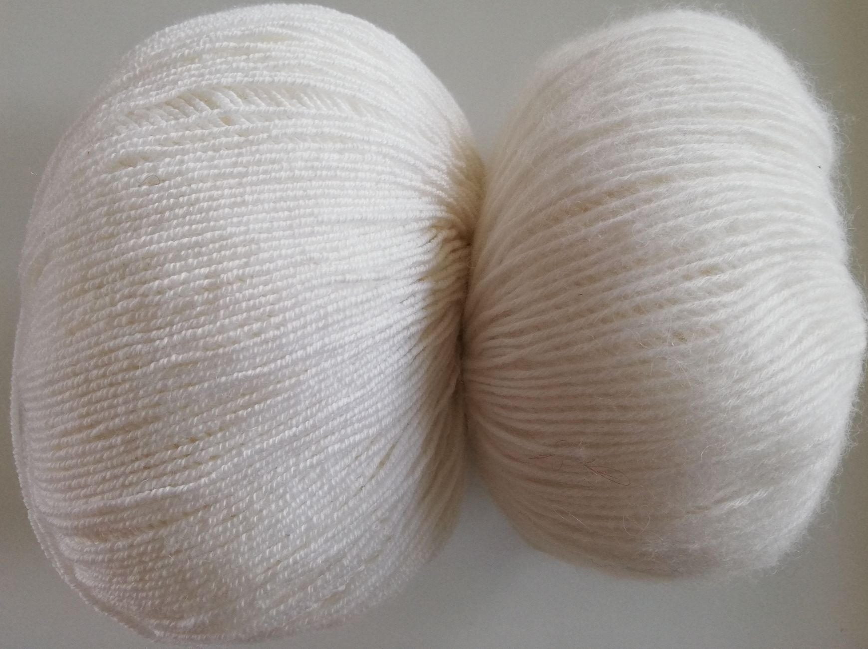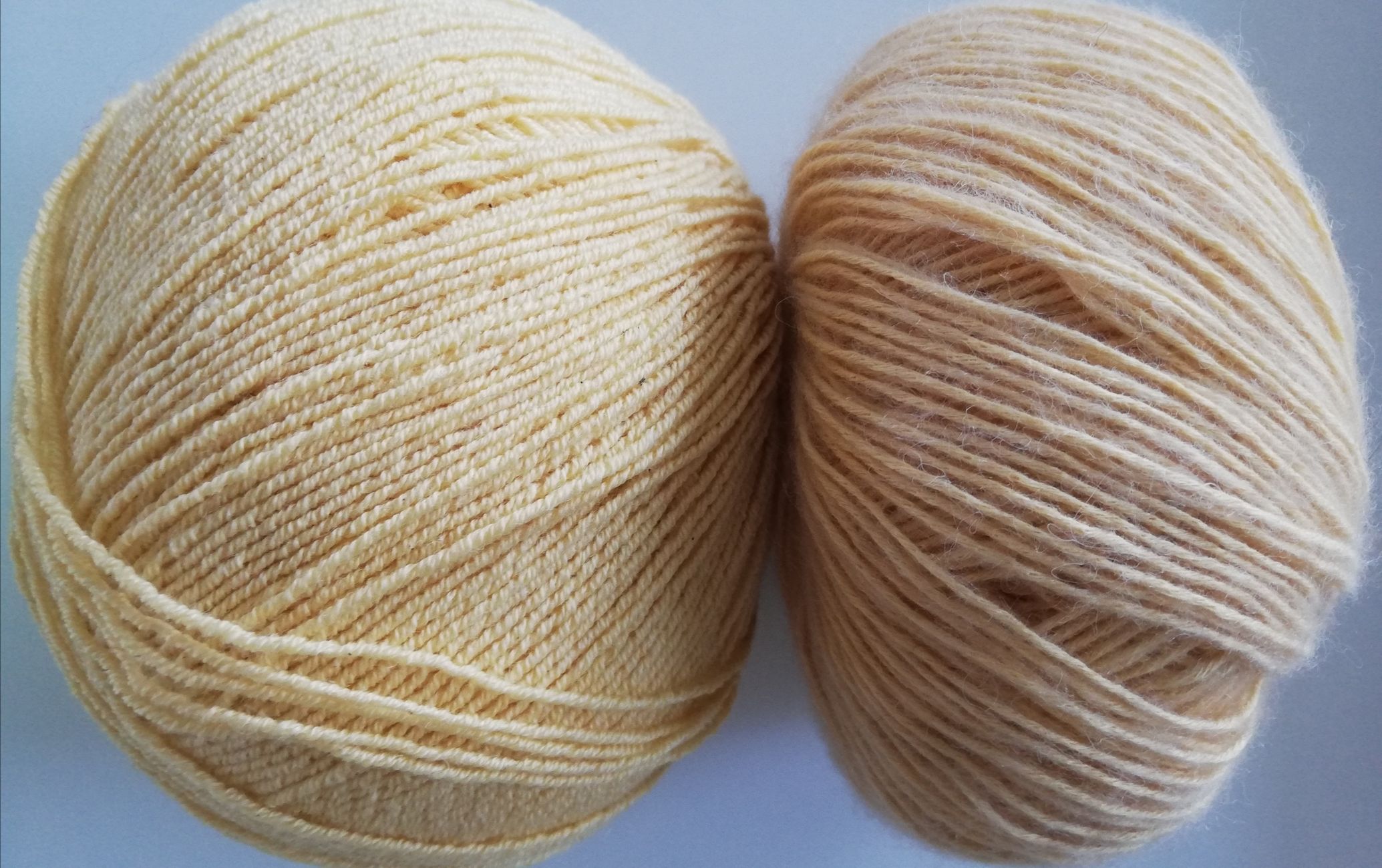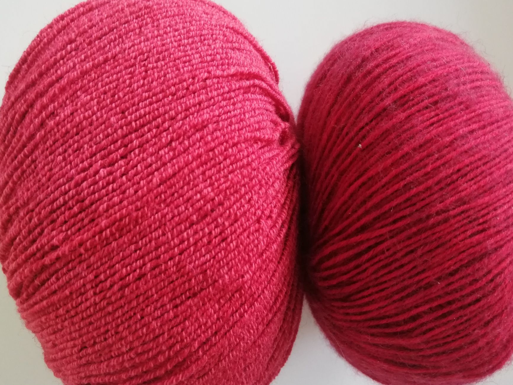 unseren Kurzschal KuSCHa - haben wir jeweils 2 unterschiedliche Garne kombiniert.