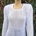 Für unseren Long-Pullover leicht und luftig - haben wir jeweils 3 unterschiedliche Garne/Farben mit einer wunderbaren leicht und luftigen Technik kombiniert.