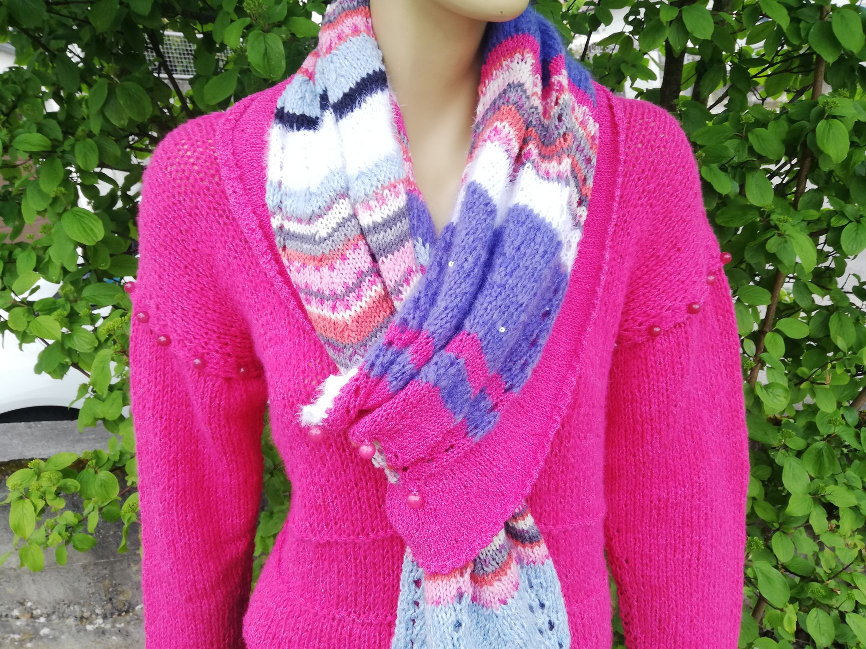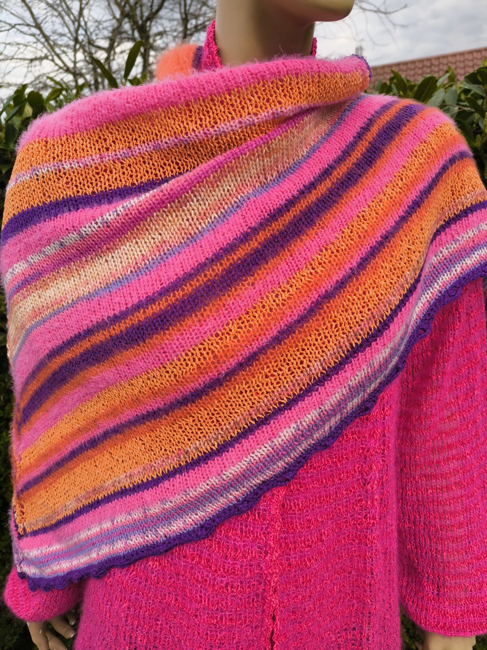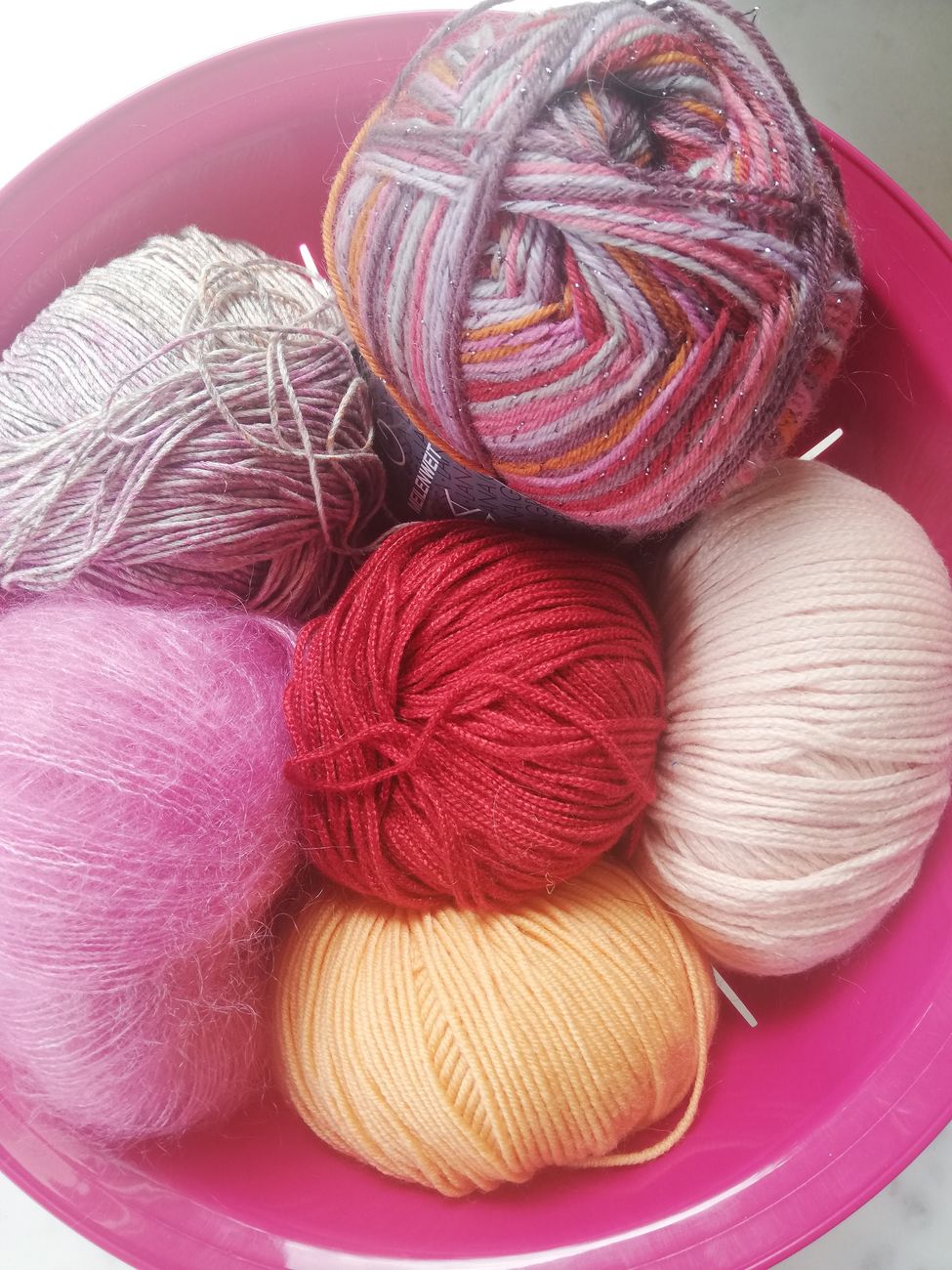 Die Menge der Wolle aus dem Wollpaket(WP) reicht - je nach Größe des Tuchs/Schals - für ca. 2 Teile. Evtl. benötigst du für das zweite Teil noch den einen oder anderen Knäul dazu.
