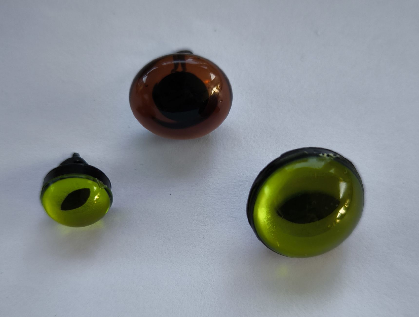 Material: Katzenaugen grün/schwarz aus Kunststoff (10mm, 16mm)