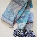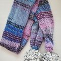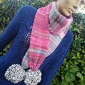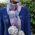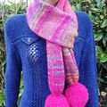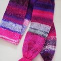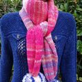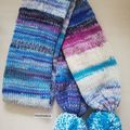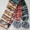 mit unterschiedlichen Garnen erstellen wir diese Schals. Sie sind doppellagig, d.h. dass Vorder- und Rückseite im gleichen Muster erscheinen.