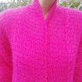 Beim Sommer-KoSam-Cardigan - stand für mich das Spiel und die Wirkung der Streifen mit 2 unterschiedlichen Garnen und Materialien im Vordergrund sowie die Figur-Freundlichkeit.