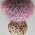 300g Glanzgarn (50g ca 110mLL) und 75g Mohair/Seide (25g ca 210mLL)