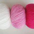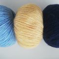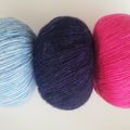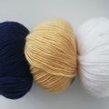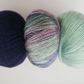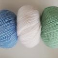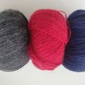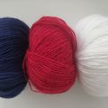 (Farben auf den Fotos können vom Original etwas abweichen, der mittlere Knäul ist jeweils für den schmalen Streifen)