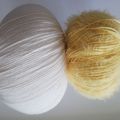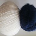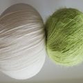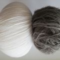 Basisgarn in Weiß: 55%Schurwolle, 25% Polyamid, 20%Seide