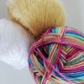 Für unser Twinset Easily20 haben wir 3 unterschiedliche Garne/Farben kombiniert.