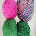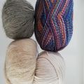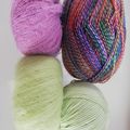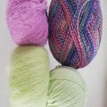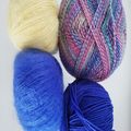 Farbe 4: bunt - 100g80% Schurwolle und 20% Polyamid (im Bild rechts oben)