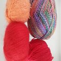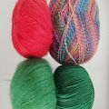 Farbe 1: uni rot/... - zart und flauschig - 150g 70% Mohair, 30% Seide (im Bild links unten)