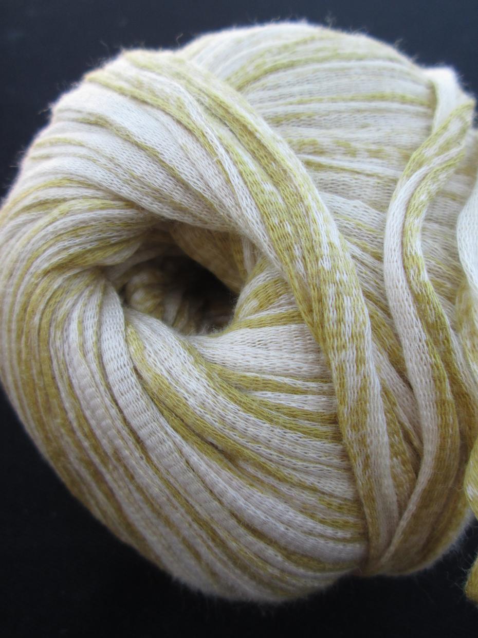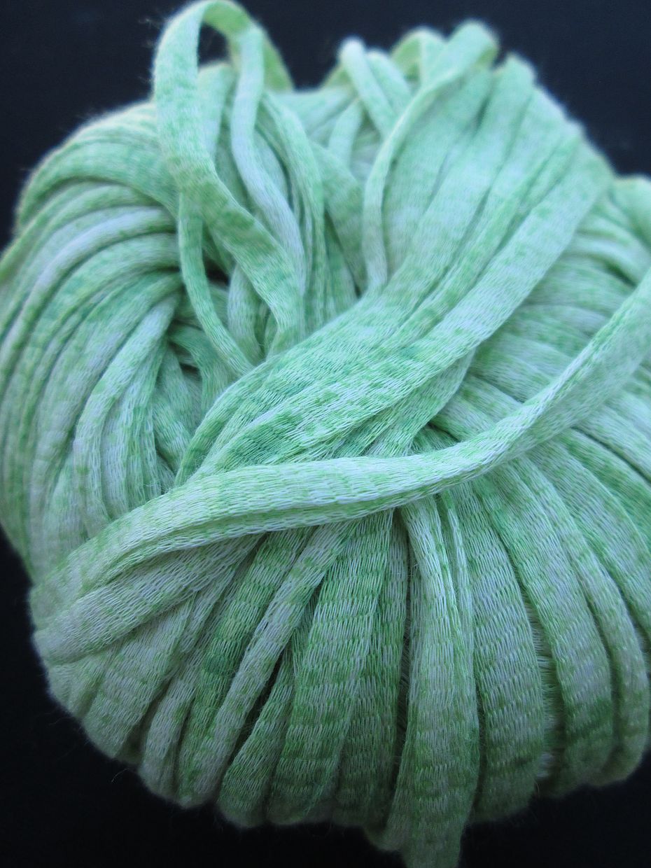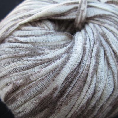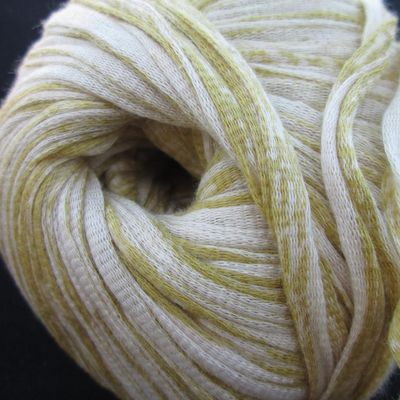 Ein wunderschönes Bändchengarn aus 80% Baumwolle und 20% Seide mit einer Lauflänge von 110m pro 50g