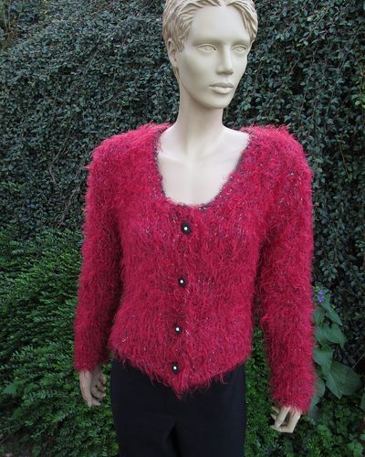 Rote Flauschjacke mit Pailetten